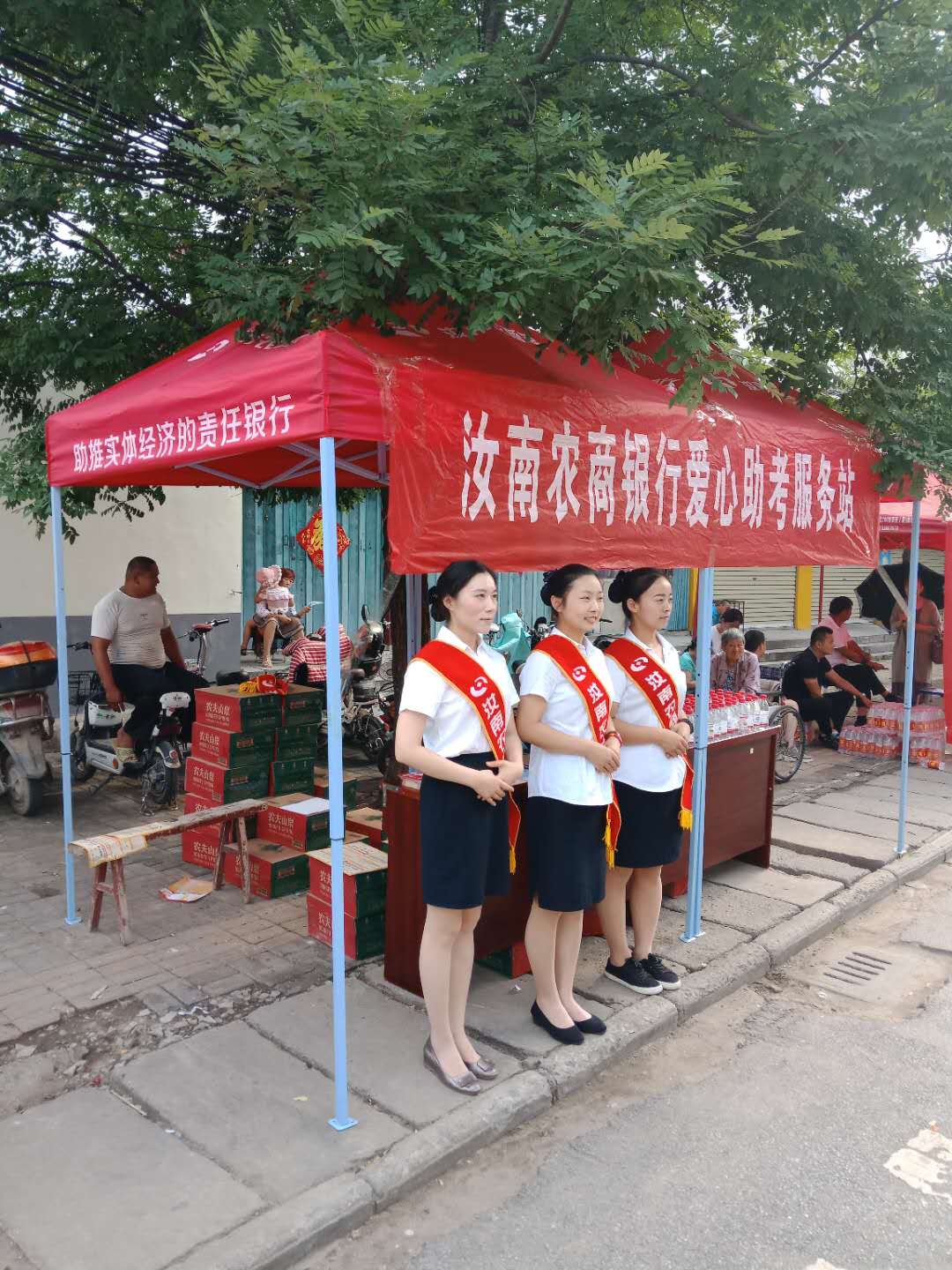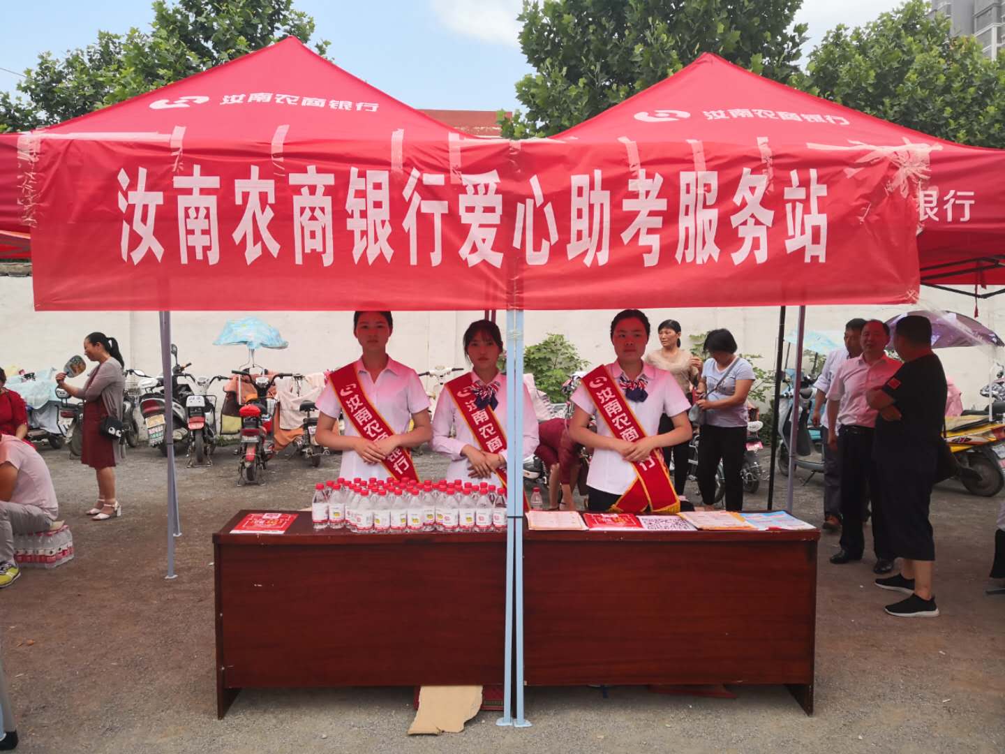 2019年6月7日、8日,汝南分公司聯(lián)合汝南縣農(nóng)商銀行在我縣三個高考考點舉行免費贈送礦泉水和考試工具活動。