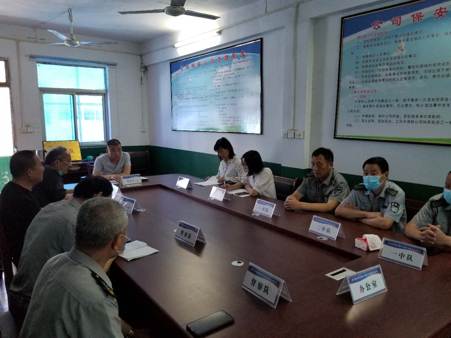 新蔡縣分公司車經(jīng)理在會(huì)議上安排督查大隊(duì)的督查方法,集中有效的督查各崗點(diǎn)人員在崗情況。同時(shí)安排各中隊(duì)對(duì)自己負(fù)責(zé)的崗點(diǎn)嚴(yán)格要求。重點(diǎn)管理各崗點(diǎn)和服務(wù)單位門口衛(wèi)生以及車輛停放問題。嚴(yán)格要求我們崗點(diǎn)保安積極配合。