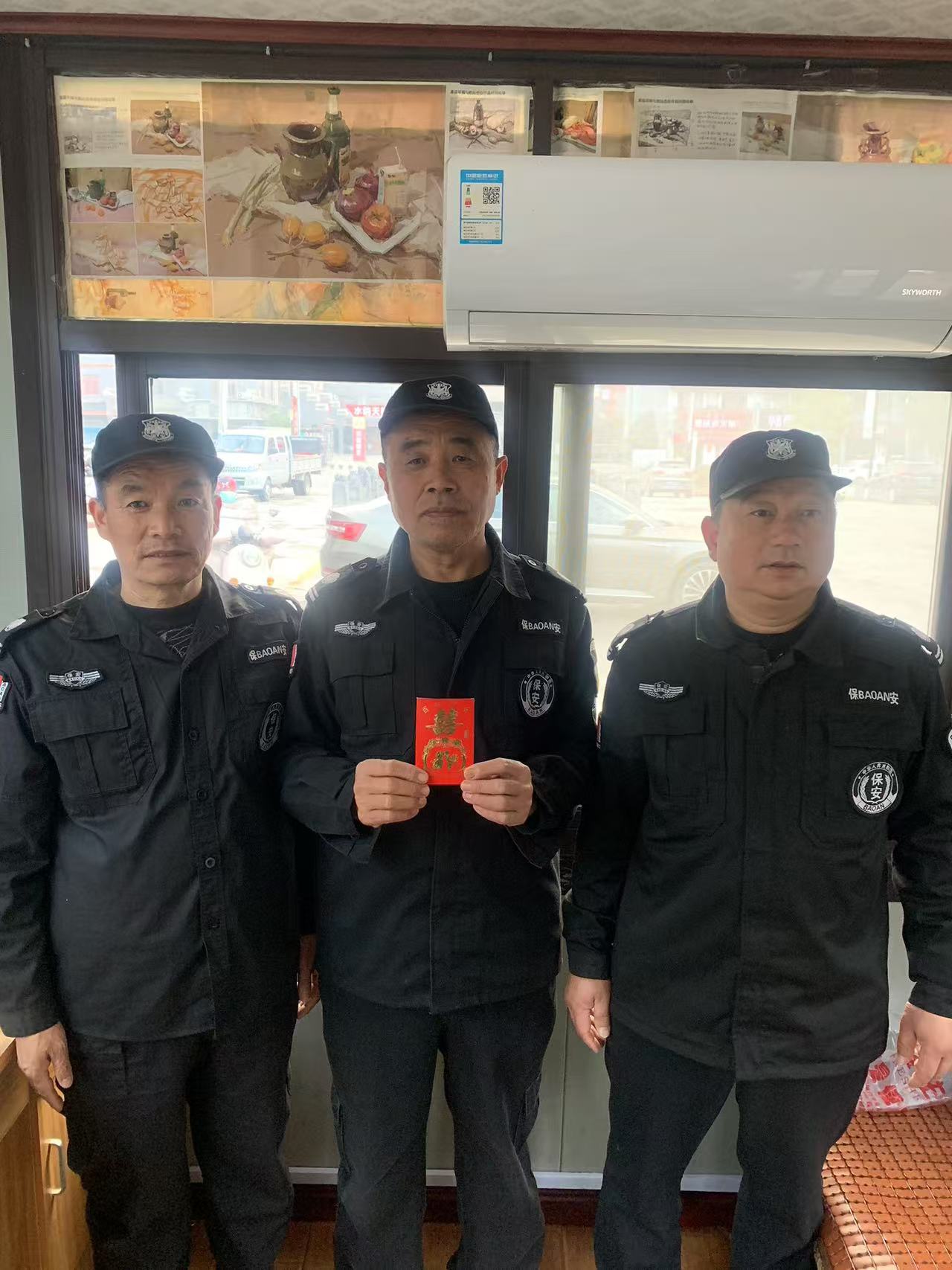 特別對當(dāng)天值班保安黃敏華同事的感謝,獎勵黃敏華同事一個紅包,并購買了慰問品對該小區(qū)全體保安人員進行慰問!