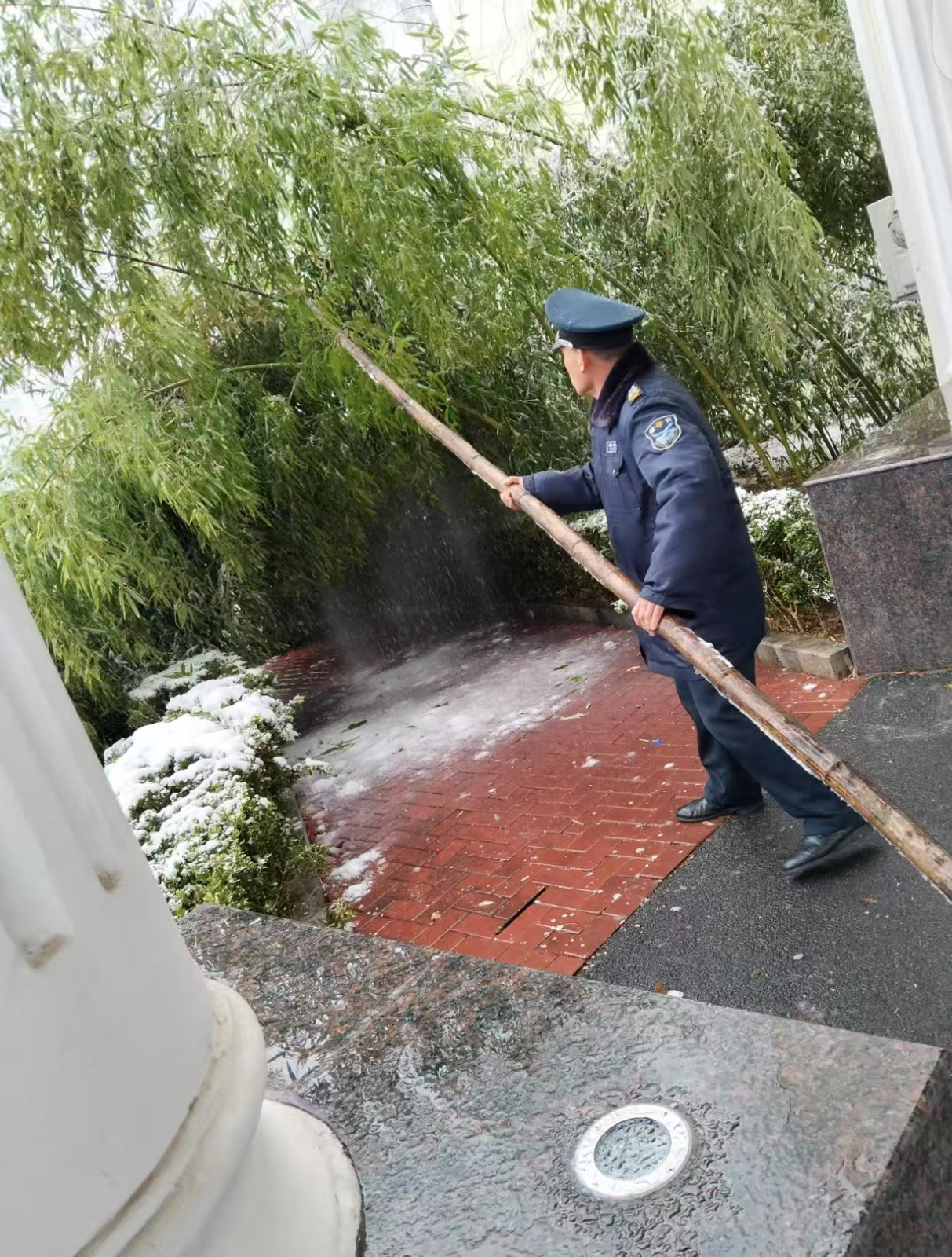 了一些安全隱患。電業(yè)局崗點(diǎn)的保安隊(duì)員們迅速行動(dòng)起來,投入到清理竹子上積雪的工