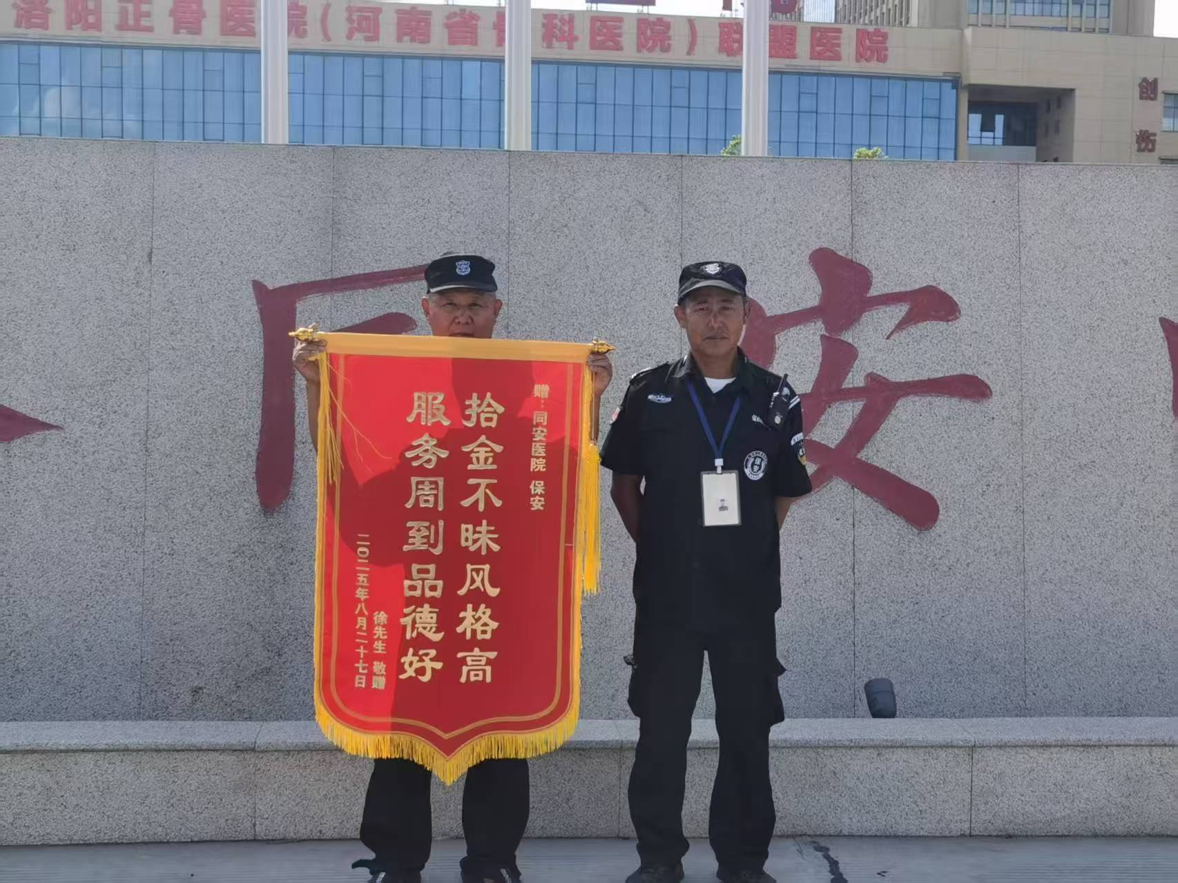 安保人員拾金不昧高尚品德獲贈錦旗