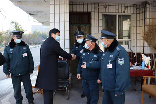 今天大年初一早8點(diǎn)開始,公司高合群經(jīng)理和常務(wù)副經(jīng)理周保卿,副經(jīng)理冀學(xué)軍等各室主任共7人,首先到派駐華港大酒店崗點(diǎn)拜年,后到農(nóng)商行金庫,農(nóng)行金庫,縣委政府,法院,公安局等等20多個崗點(diǎn)進(jìn)行拜年。