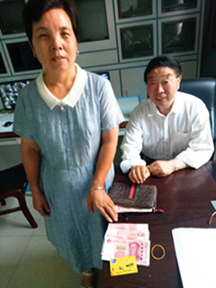 到了物業(yè)辦公室,保安員譚喜亮說:“你過來看這個錢包是你的嗎?”失主一看感動的眼淚嘩的一下就流了下來,“你快清點一下看東西少不少”,“不少不少,太感謝你們了”,說著抽出500塊錢對譚喜亮表示感謝,被譚喜亮婉言謝絕,失主說“這7700塊錢是我賣小麥的錢,丟了一年白忙活了”。