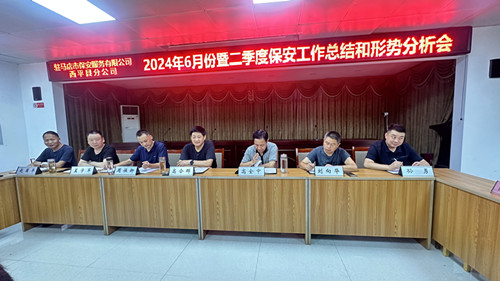 2024年7月23日晚,西平縣分公司在公司五樓會議室召開第二度保安工作總結和形勢分析會,會議由常務副經理周保卿主持,副經理冀學軍通報第二季度人防、物業(yè)考核考評和半年客戶回訪情況,表彰了二季度被評為先進單位和優(yōu)秀保安隊員及好人好事,同時,對存在的問題進行回顧總結,會后,分公司支部書記高合群對當前保安市場及下步工作進行深入分析研究,并結合分公司實際情況進行人事調整,從新布置下半年總體目標任務。