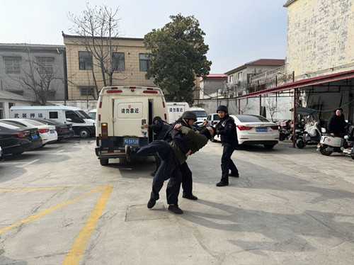 演練模擬了押運途中遭遇不法分子襲擊的場景。當(dāng)押運車輛??繒r,“歹徒”突然出現(xiàn),試圖搶劫押運財物。押運人員迅速反應(yīng),按照預(yù)定應(yīng)急方案,一方面利用車輛作為掩體,持槍警戒,與“歹徒”對峙;另一方面,部分人員果斷采取行動,制服靠近的“歹徒”,整個過程配合默契、行動迅速。