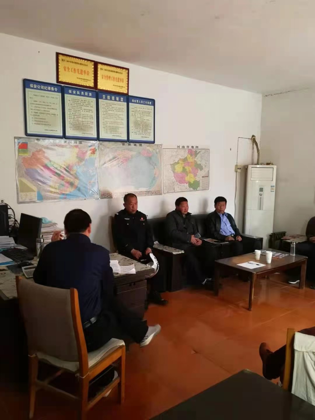 返回舊版?正陽縣分公司2021年3月24日下午三點三十分,在公司辦公室召開全體隊(班)長及垂直崗點負責人參加的會議。一.傳達貫徹市公司3月23日召開的“駐馬店市保安服務有限公司縣區(qū)人防技防管理工作會議”的精神。二宣讀了市公司3月8日至3月I2日對“四縣分公司”的督察通報,對照檢查、找差距、補短板、引以為戒。制定方案、整改措施、工作紀律、獎懲制度等。三.開展為期十天的(三月二十五日至四月五日)以“著裝和作風紀律整頓”活動。四.以市公司領導講話為出發(fā)點,爭取達到抓機遇、轉(zhuǎn)作風、占市場、樹形象、促品牌、創(chuàng)效益的目標。