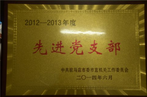 被中共駐馬店市委市直機(jī)關(guān)工作委員會授予2012-2013年度先進(jìn)黨支部
