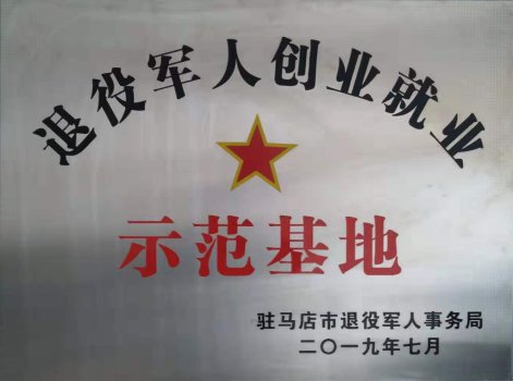 被駐馬店市退役軍人事務(wù)局授予退役軍人創(chuàng)業(yè)就業(yè)示范基地