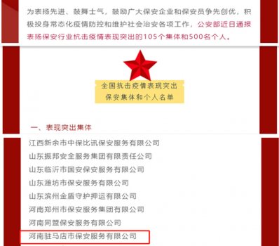 被公安部表彰為保安行業(yè)戰(zhàn)“疫”先進(jìn)集體