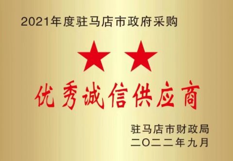 公司被評為“2021年度駐馬店市政府采購‘優(yōu)秀誠信供應(yīng)商’”