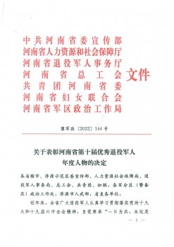 河南省第十屆優(yōu)秀退役軍人年度人物