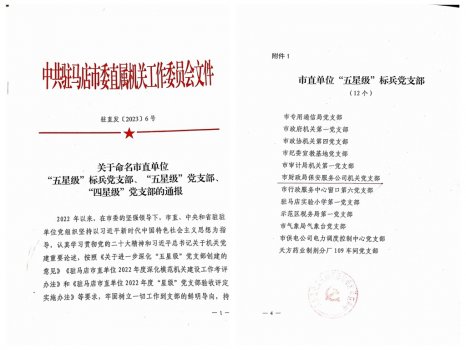 公司機(jī)關(guān)黨支部被駐馬店市直屬機(jī)關(guān)工作委員會表彰為“五星級”標(biāo)兵黨支部