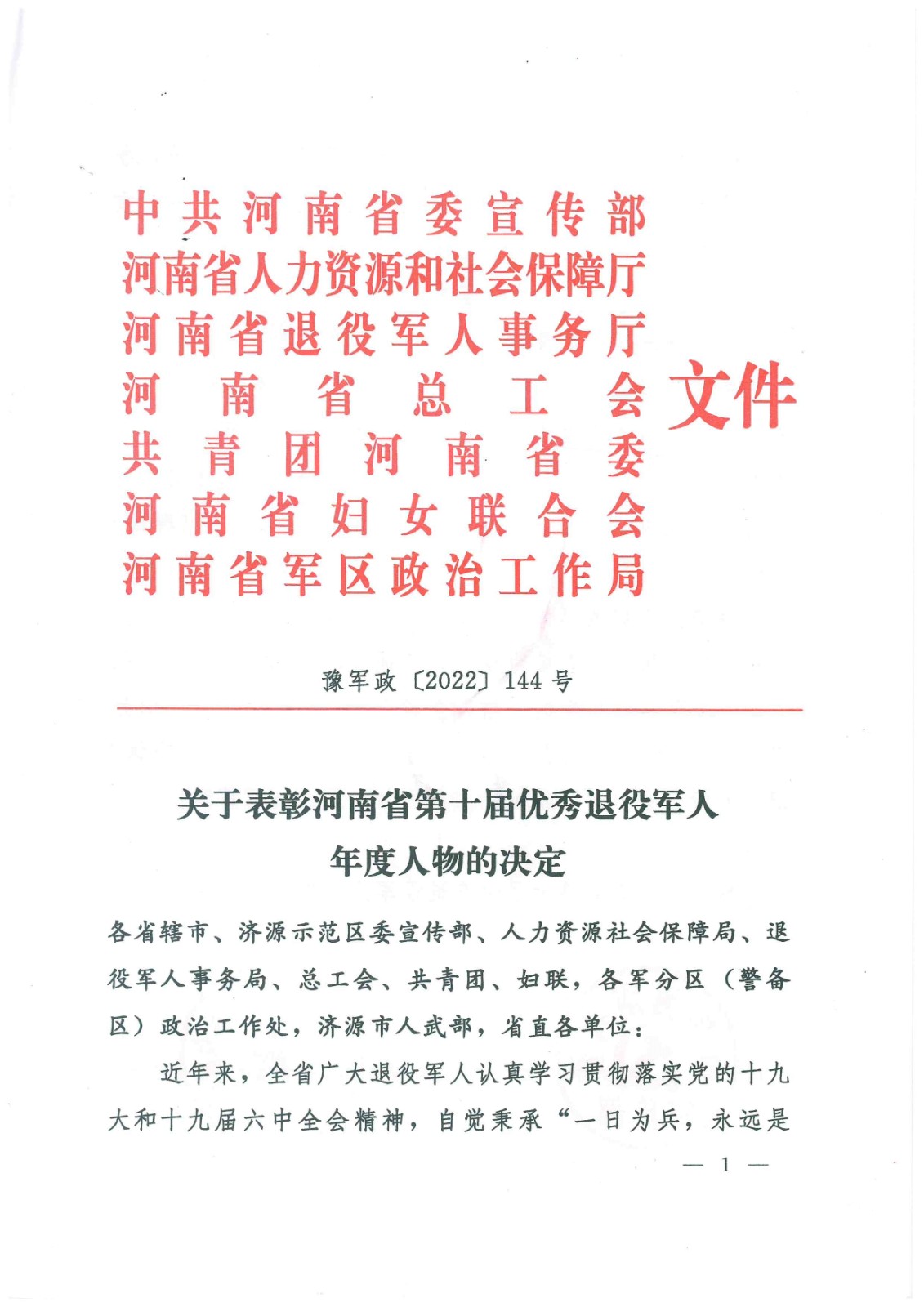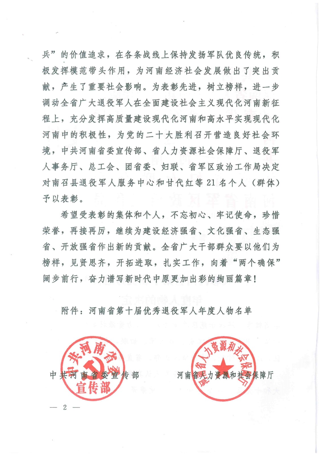 2022年8月1日,在“永遠(yuǎn)的兵”河南省第十屆優(yōu)秀退役軍人年度人物評選表彰活動中,駐馬店市保安服務(wù)有限公司(集體)被中共河南省委宣傳部、河南省人力資源和社會保障廳、河南省退役軍人事務(wù)廳、河南省總工會、共青團河南省委、河南省婦女聯(lián)合會、河南省軍區(qū)政治工作局表彰為“‘年度人物’提名獎”。