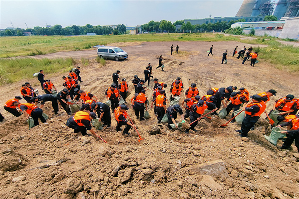 公司抽調(diào)150人組成防汛處突應(yīng)急救援隊。上午10時整,應(yīng)急拉動演練總指揮副總經(jīng)理鄧?yán)^國下達(dá)指令:應(yīng)急處突救援隊在指定的時間到達(dá)駐馬店市公交駕校院內(nèi)集結(jié)。接到指令后,各單位人員聞令而動,快速反應(yīng),第一時間到達(dá)指定地點(diǎn),切實做到了隊伍反應(yīng)敏捷、集結(jié)速度快、作風(fēng)紀(jì)律嚴(yán)謹(jǐn)?shù)纫?。隨后,防汛處突應(yīng)急演練總指揮鄧?yán)^國下達(dá)了模擬抗洪防汛演練,防汛處突應(yīng)急救援隊迅速趕往事發(fā)地駐馬店某工廠進(jìn)行防汛搶險演練。