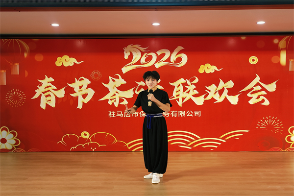 駿馬迎春至,歡歌賀歲來(lái)。2026年丙午馬年新春腳步日益臨近之際,2月11日下午,公司2026年春節(jié)茶話會(huì)隆重召開(kāi)。公司領(lǐng)導(dǎo)班子、各分公司及部門(mén)負(fù)責(zé)人與基層員工代表齊聚一堂,共憶往昔崢嶸,共話未來(lái)藍(lán)圖,用昂揚(yáng)的歌聲、歡快的舞姿,奏響了國(guó)有安保企業(yè)凝心聚力、逐夢(mèng)前行的新春樂(lè)章。