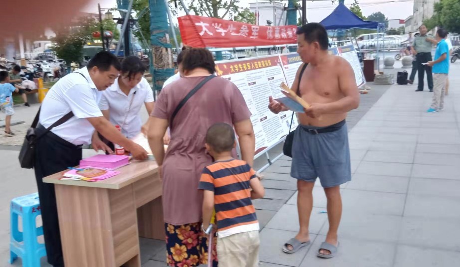 返回舊版?2019年7月26日晚7點(diǎn),汝南縣委、縣政府在天中山文化廣場舉辦慶祝中國人民解放軍建軍92周年暨最美退役軍人表彰儀式。汝南分公司借此機(jī)會,印制了一批宣傳單,由分公司副經(jīng)理喬運(yùn)強(qiáng)帶隊(duì),在廣場上向群眾宣傳汝南分公司,并招錄復(fù)退役軍人到公司就職。